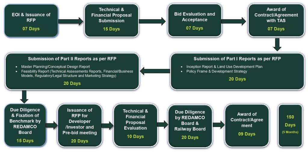 REDAMCO undertakes commercial real estate projects, renovation of existing railway properties, and leasing land for commercial purpose such as petrol pumps, retail outlets, advertising, parking facilities etc.